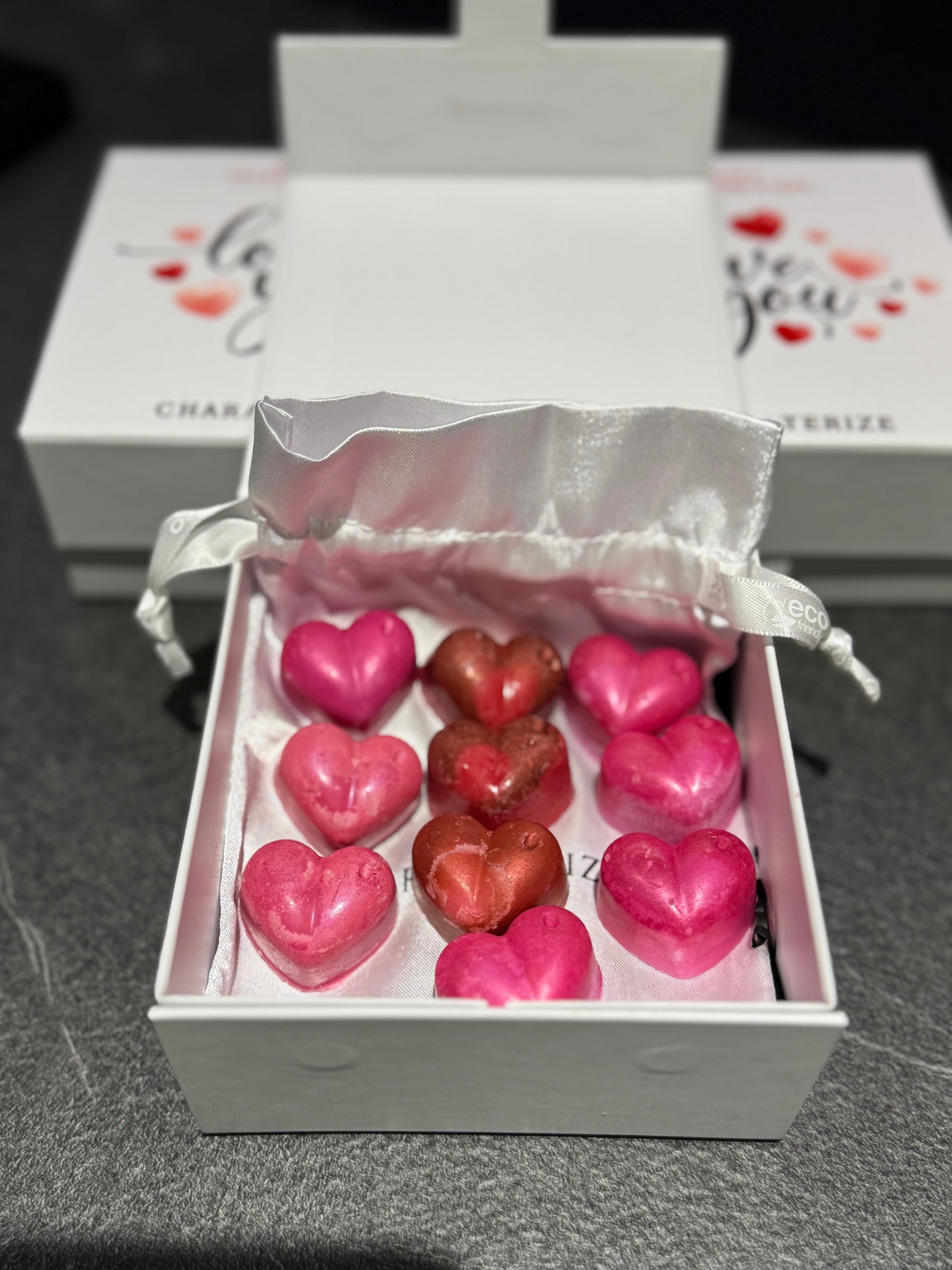 Melt hearts and fill your space with romance with our Valentine’s Heart Wax Melts. A set of 10 beautifully scented heart-shaped melts, perfect for creating a warm and inviting atmosphere.