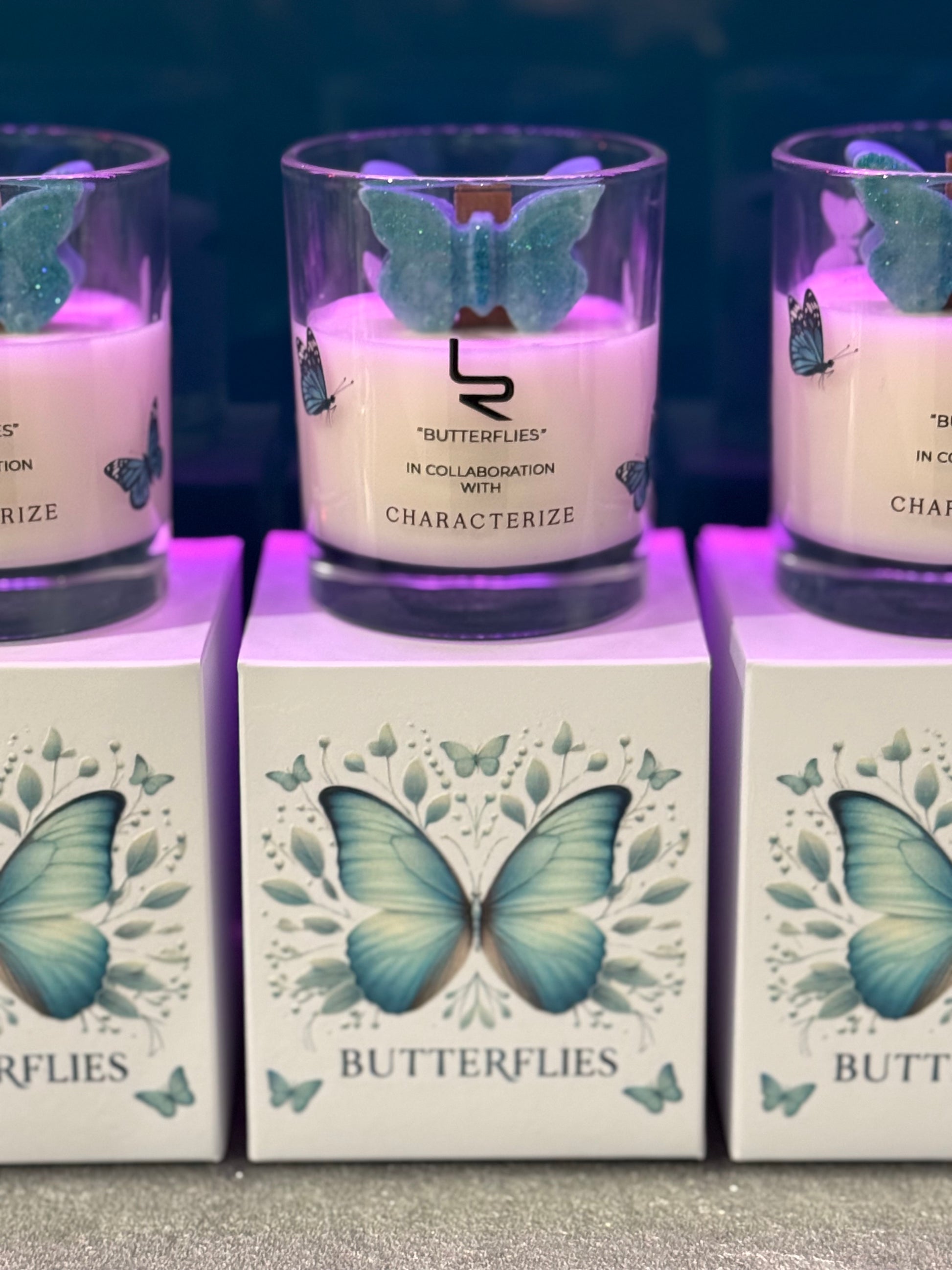 Butterflies, a candle created in collaboration with Life of Remedy, Butterflies is a limited-edition candle celebrating the launch of the new single, "Butterflies." This enchanting scent captures the magic of transformation, much like the flutter of delicate wings.