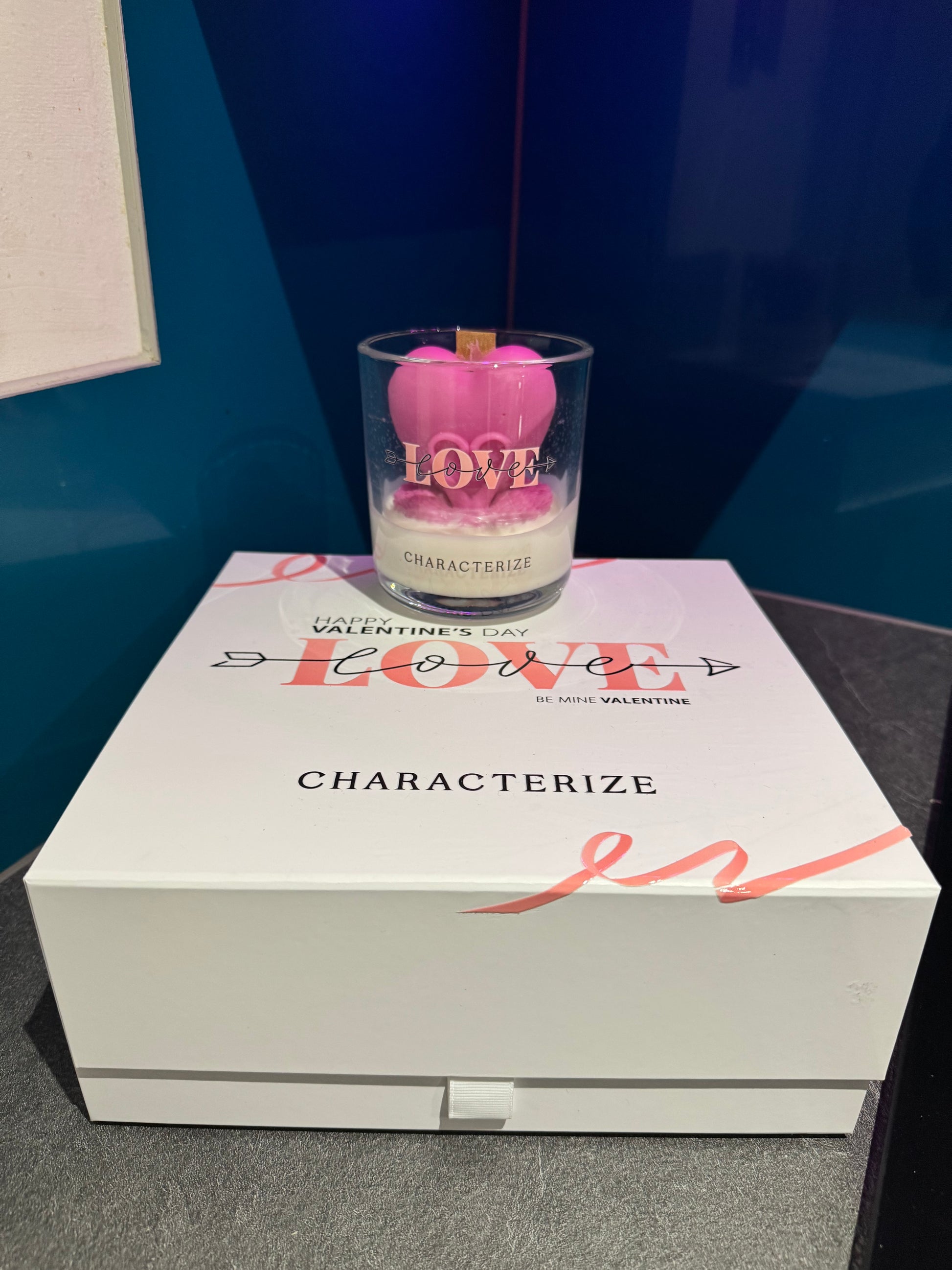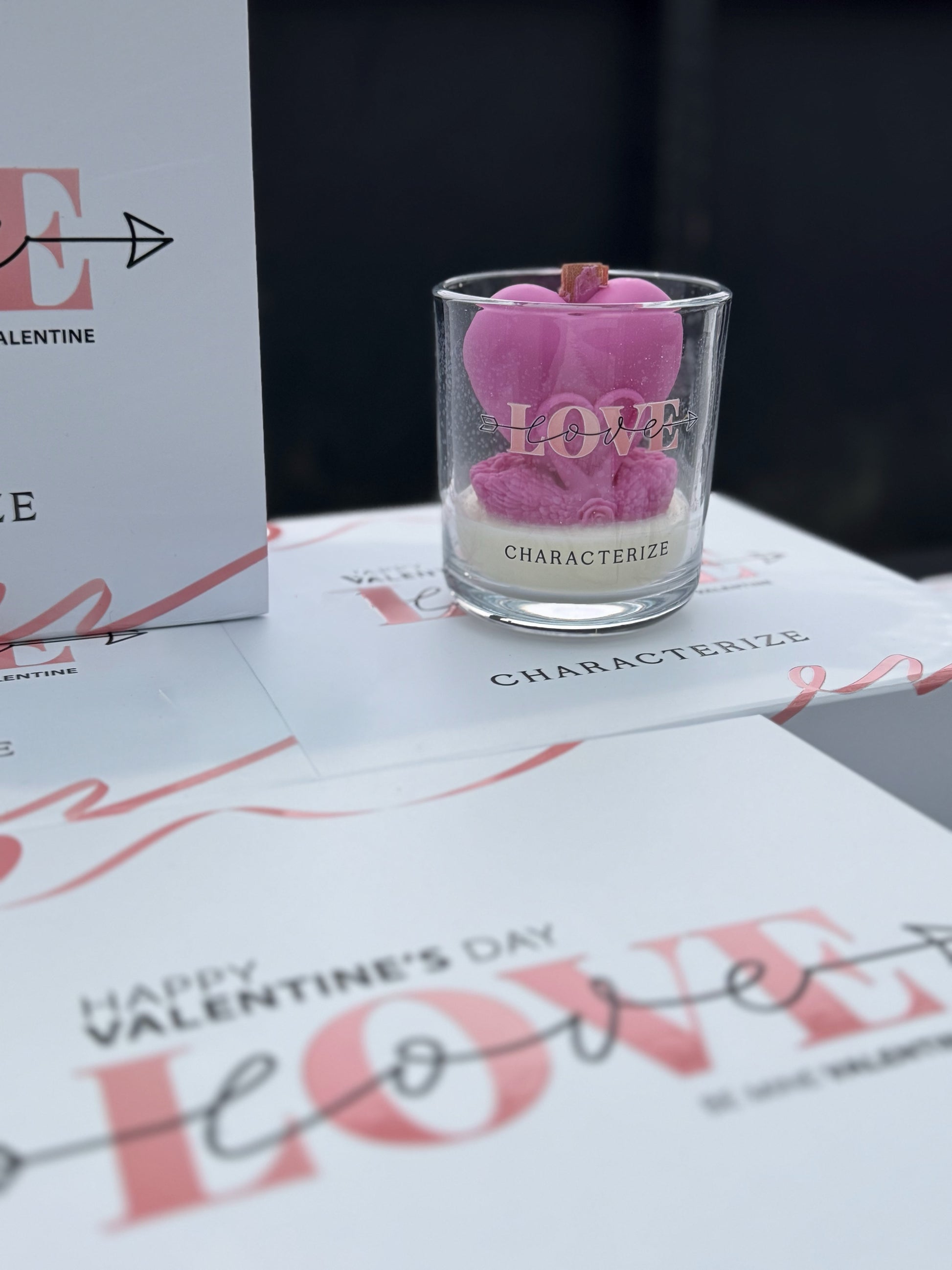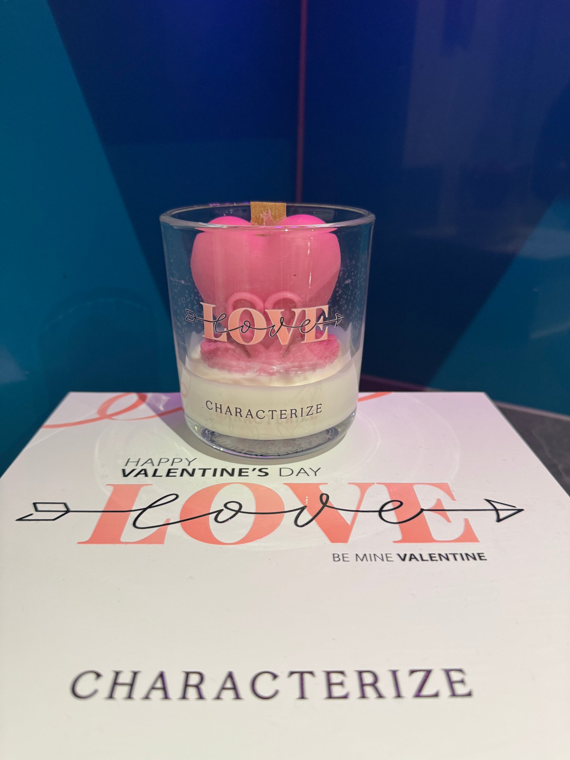 Set the mood for romance with a Characterize Love Candle, a beautifully crafted soy wax candle with a wooden wick designed to captivate the senses. At its center, a delicate love heart rests atop a smooth wax base, housed in an elegant glass vessel that adds a touch of charm to any space.